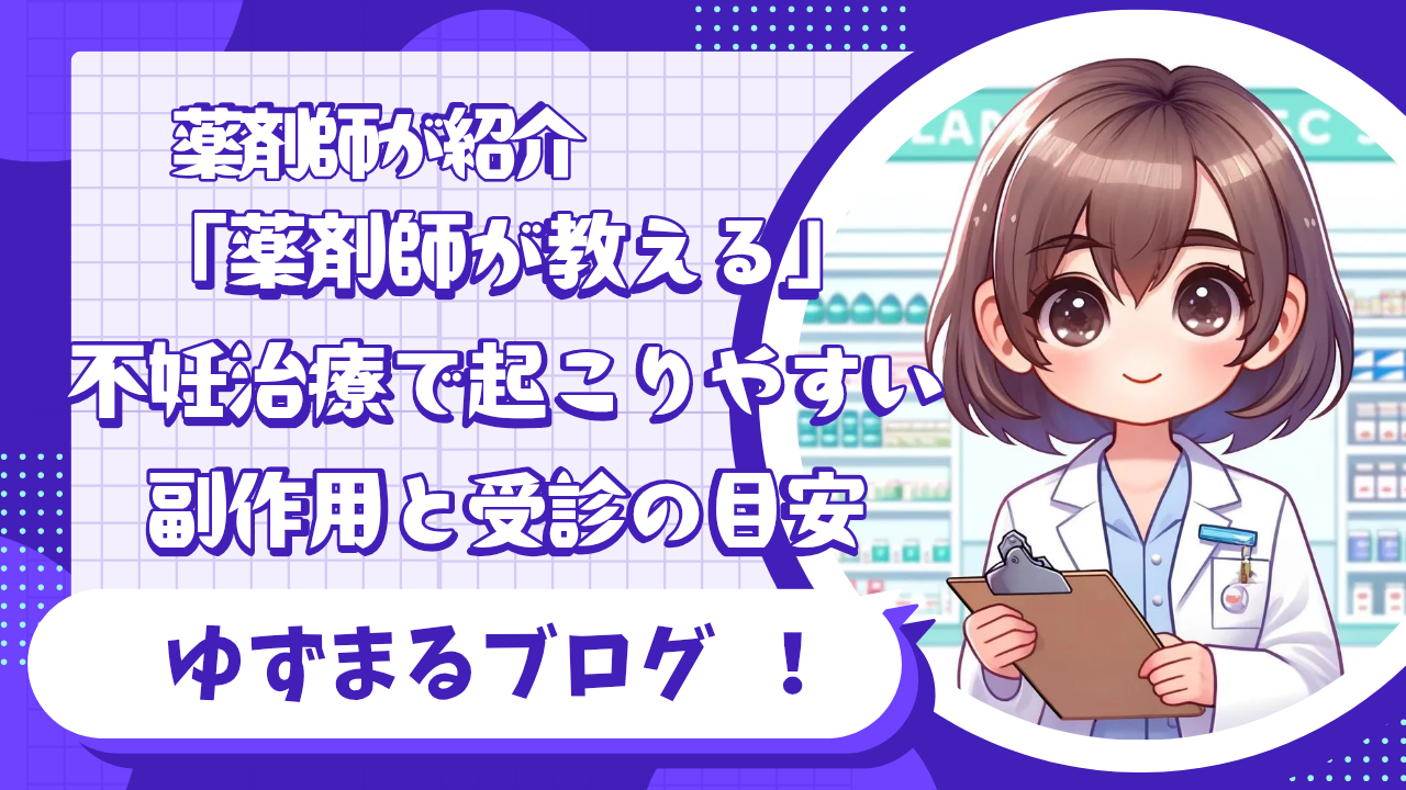 不妊治療って、薬も注射も多くて「これって副作用?受診した方がいい?」って不安になりやすいよね。今日は“よくある副作用”と“受診すべきサイン”を、薬剤師目線で整理していくよ。