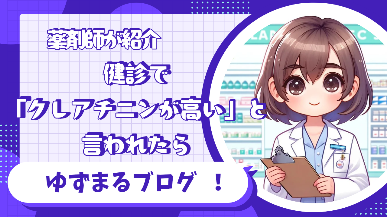 健診結果で「クレアチニンが高い」って書かれてると、びっくりしますよね。今日は血清クレアチニン(Cr)の意味・上がる原因・どうすればよいかを、薬剤師目線で丁寧にまとめます!