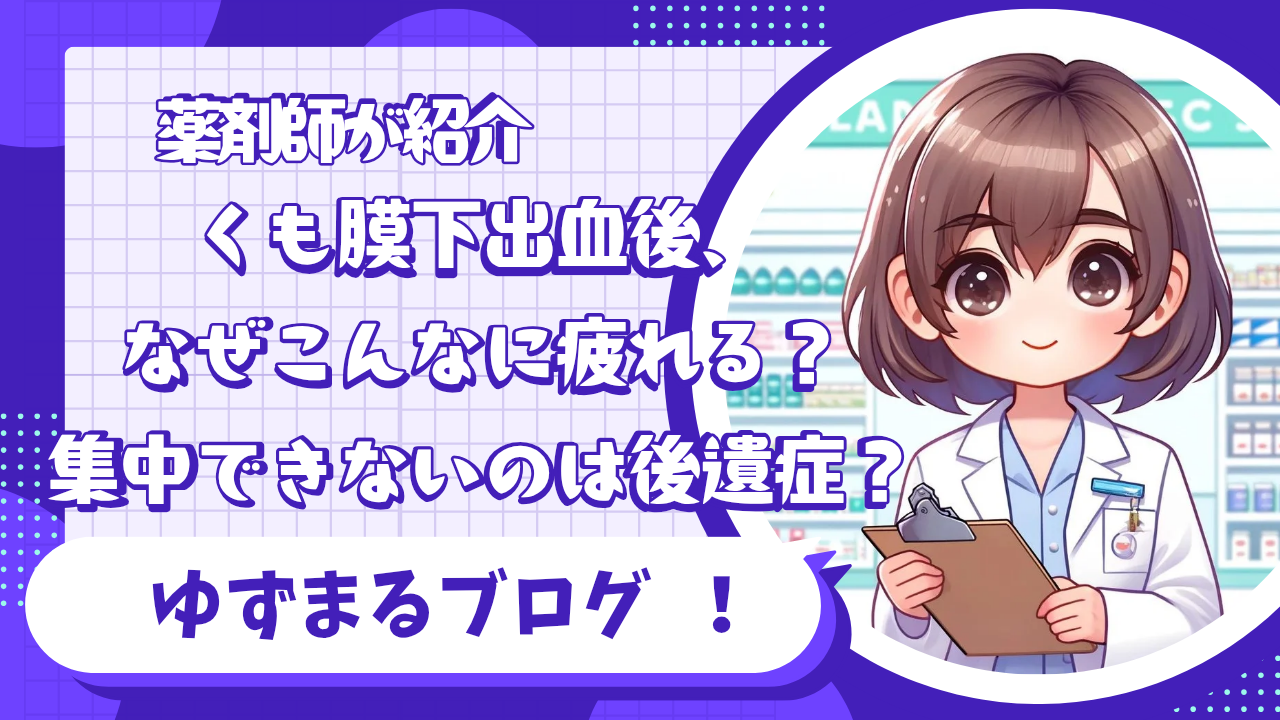 - くも膜下出血後の疲労・集中低下は、脳の回復、睡眠、心理、薬など複数要因が絡む
