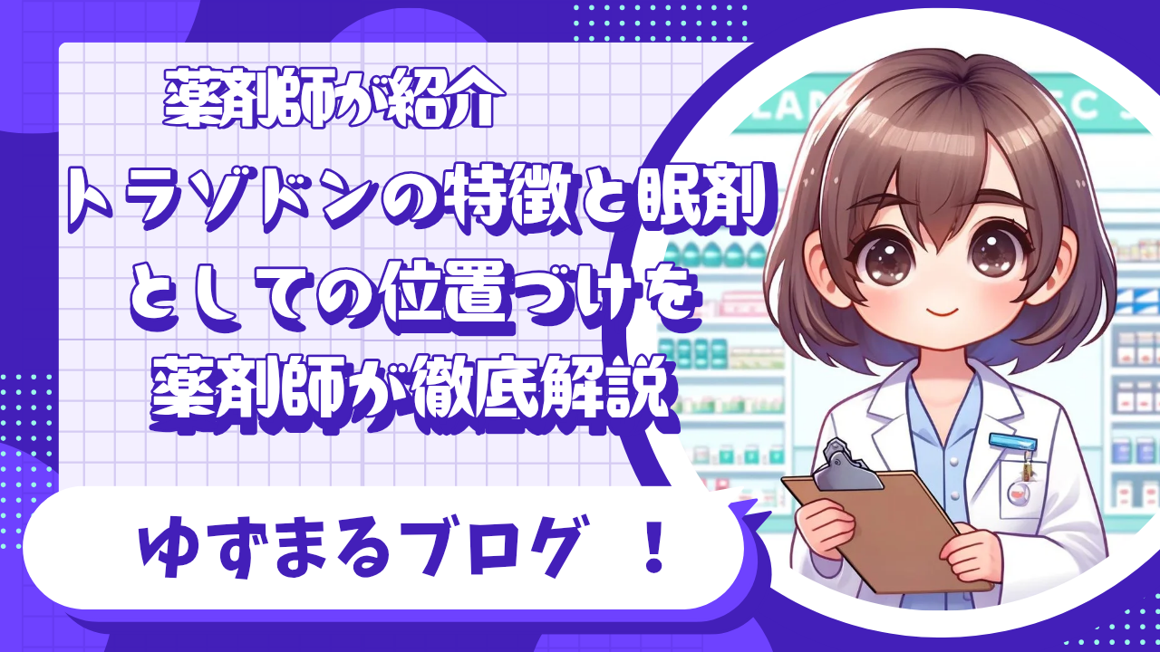 ただし、「一般的な不眠症(原発性不眠症)に対して、睡眠薬代わりに安易に使う薬」ではないことも同時に押さえておく必要があります。本記事では、薬局薬剤師の立場から、トラゾドンの特徴・眠剤として用いられる背景・注意点・患者さんへの説明のコツを、できるだけ平易な言葉で整理していきます。